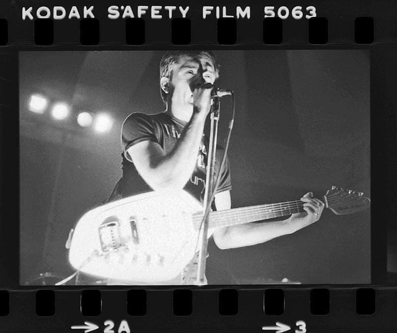 Photo of Ian Curtis Ian Curtis performing live onstage, playing Vox Phantom Special VI guitar CREDIT: Chris Mills/Redferns